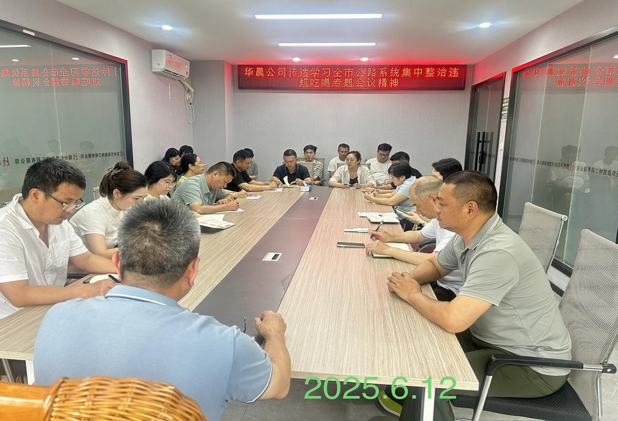 6月11日,市公路發(fā)展中心組織召開了全市公路系統(tǒng)整治違規(guī)吃喝專題會議。公司領(lǐng)導在參加完該會議后,隨即組織了公司的相關(guān)會議,學習省市關(guān)于整治違規(guī)吃喝專題會議的會議精神。