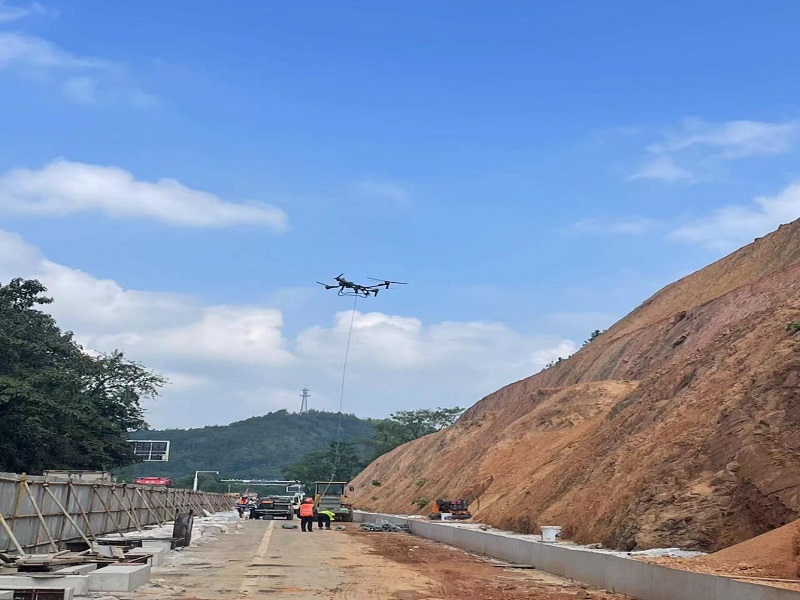 金秋時(shí)節(jié),建設(shè)熱潮涌動(dòng)贛南大地。在2025南康區(qū)G105線災(zāi)毀恢復(fù)重建工程施工現(xiàn)場(chǎng),面對(duì)3、4級(jí)高邊坡施工環(huán)境,傳統(tǒng)陸路運(yùn)輸受地形制約嚴(yán)重,傳統(tǒng)調(diào)運(yùn)方式無法實(shí)施,人工搬運(yùn)又效率低下且安全隱患嚴(yán)重,項(xiàng)目部創(chuàng)新科技,在實(shí)踐中運(yùn)用無人機(jī)吊運(yùn)技術(shù),將鐵絲網(wǎng)、水泥等關(guān)鍵材料精準(zhǔn)空投至作業(yè)面。這一舉措不僅突破了地理限制,更顯著提升了施工效率。通過科技賦能,項(xiàng)目部有效應(yīng)對(duì)了作業(yè)高度高、運(yùn)輸難、風(fēng)險(xiǎn)高的三重挑戰(zhàn),展現(xiàn)了現(xiàn)代化工程建設(shè)的智慧與擔(dān)當(dāng)。