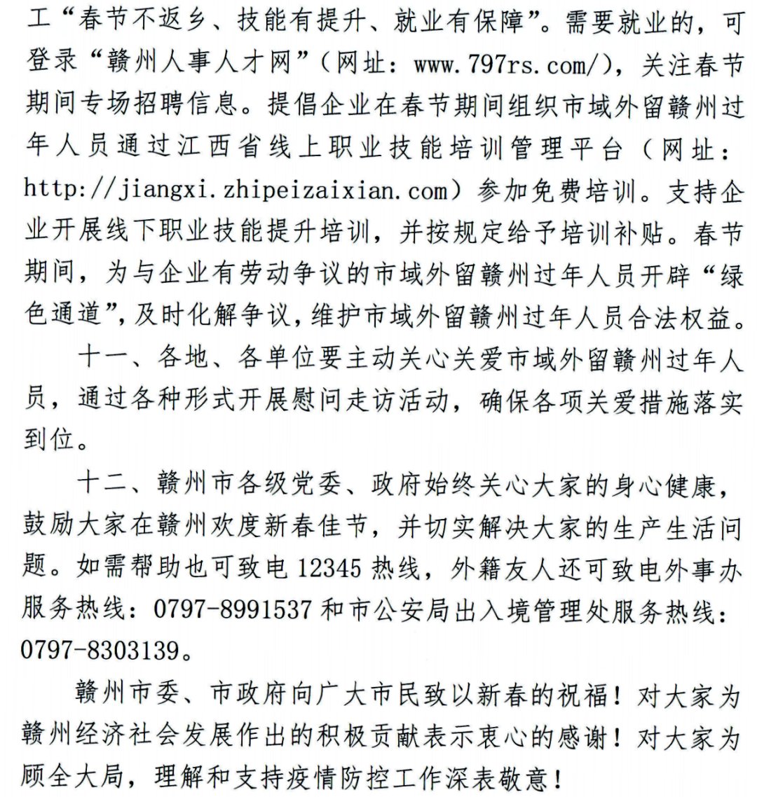 贛州市新冠肺炎疫情防控應(yīng)急指揮部發(fā)布1號通告!為市域外留贛州過年人員發(fā)放“春節(jié)禮包”!